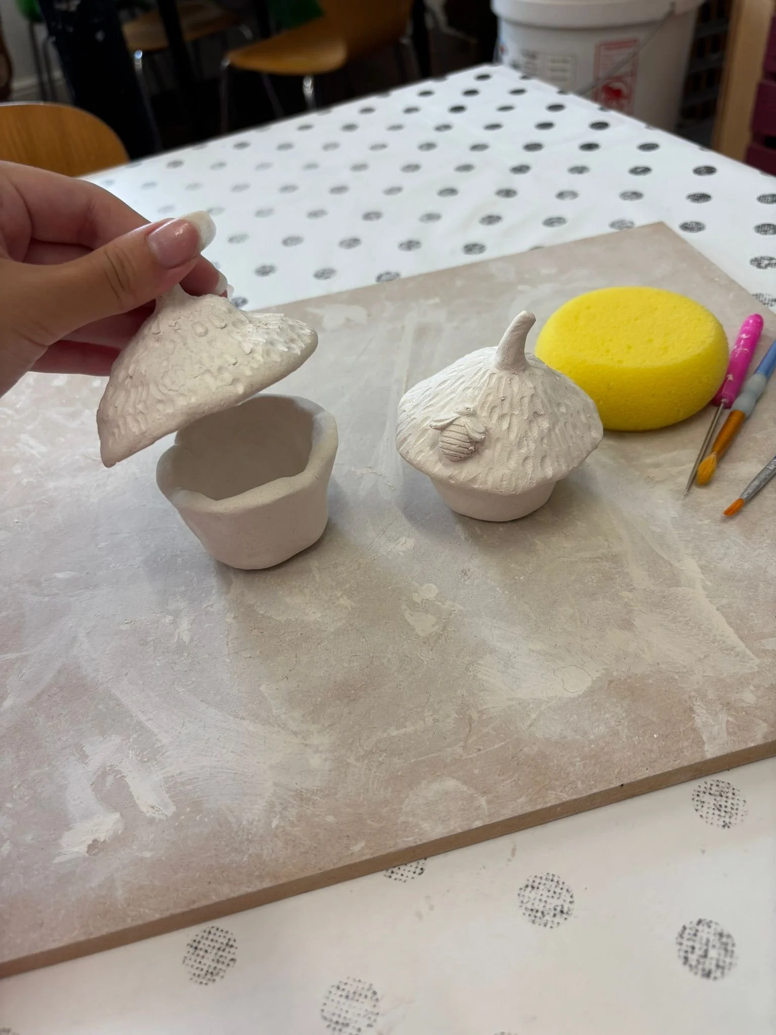 This is a two part class. After you make your house, we will bisque fire it and send you a message to book in and paint your item in any of our usual time slots.